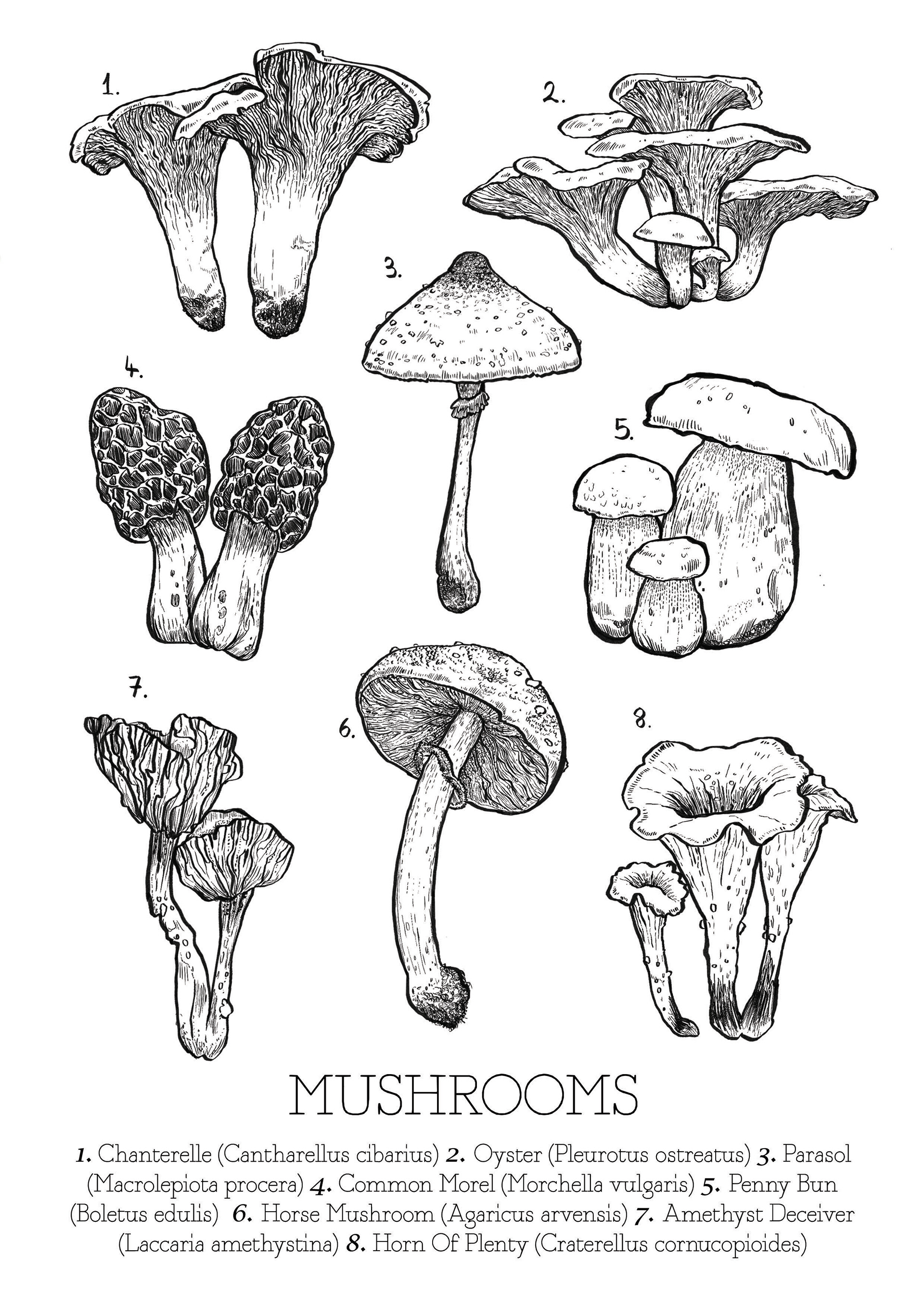 Mushroom identification key, done on Procreate app and Adobe Photoshop