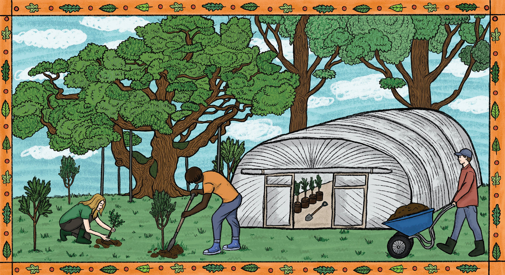 'Sherwood Forest Trust' - An editorial illustration for an article interview on the conservation of the forest and a new tree planting nursery.